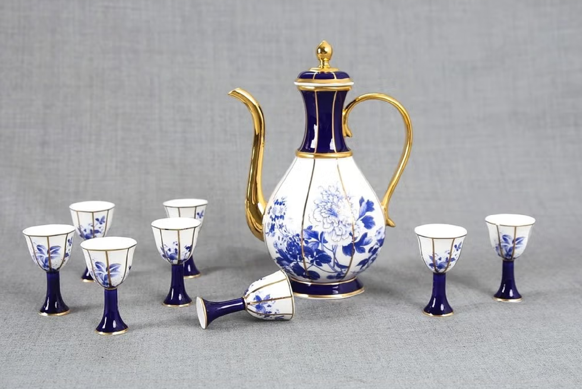 مجموعة النبيذ الخزفية GAOCHUN، إضافة مذهلة إلى أي بار منزلي أو مساحة ترفيهية. تتميز هذه المجموعة بإبريق نبيذ خزفي جميل و8 أكواب نبيذ بيضاء عالية القدم، كلها مزينة بتصميم قصر صيني تقليدي للحصول على لمسة من الأناقة الكلاسيكية. الحرفية والاهتمام بالتفاصيل واضحان في الأنماط المعقدة والمواد عالية الجودة المستخدمة. المجموعة مثالية لاستضافة الضيوف أو الاستمتاع بليلة هادئة مع من تحب. التصميم الرقيق والتغليف الجميل للهدايا يجعلها خيارًا ممتازًا للإهداء في المناسبات الخاصة.