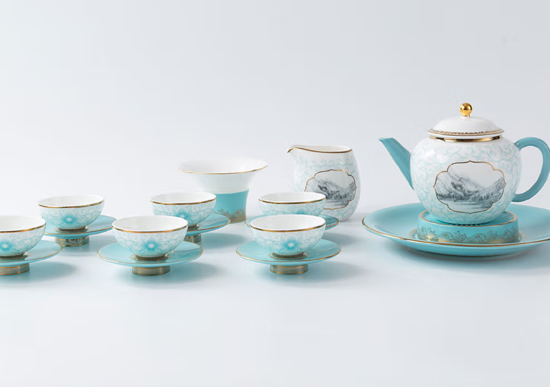 مجموعة شاي من 18 قطعة من خزف طريق الحرير